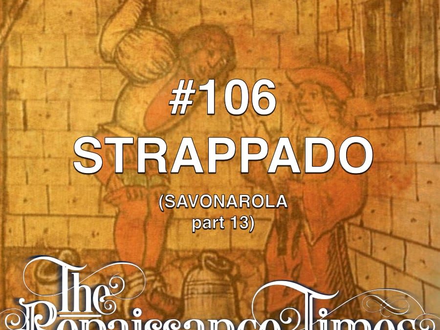 The trials of Savonarola begin. First he is put on trial by the Signoria of Florence for his political interference. Then he is put on trial by the Pope for his religious accusations and claims of prophecy. This being Catholic Italy, part of the trial involves torture – the strappado. Under torture Savonarola confesses to making everything up and being a big old fake. The_Strappado_by_Jacques_Callot_(cropped)